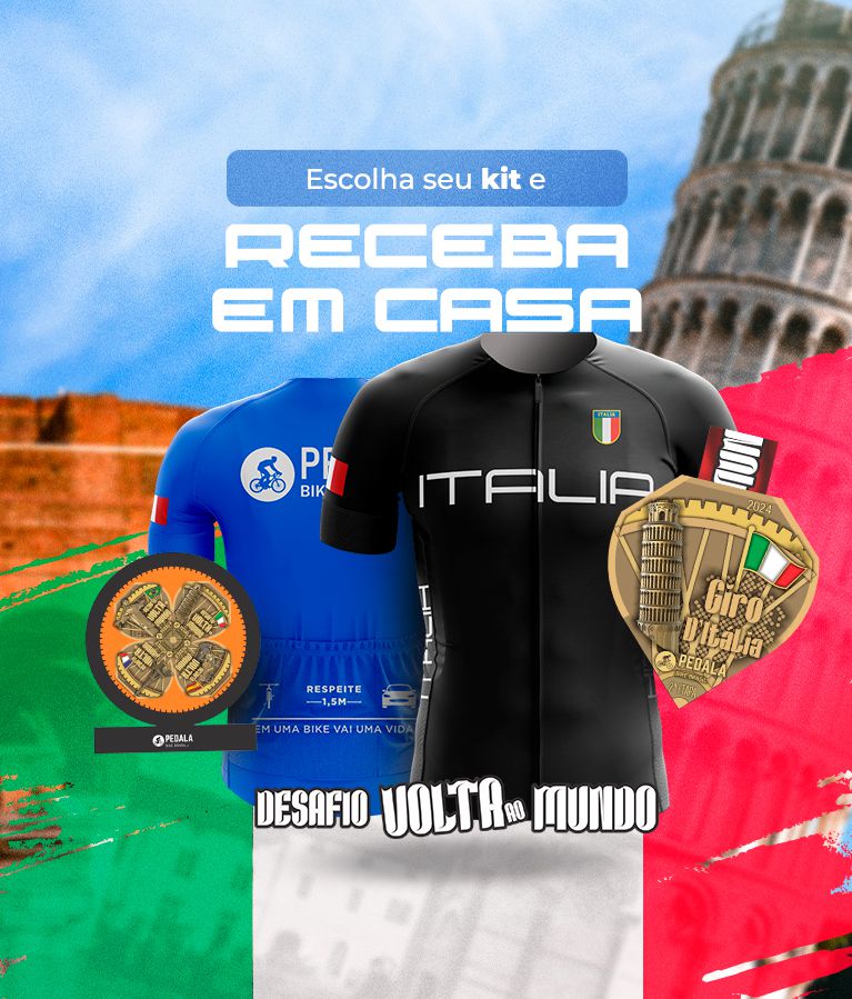 O desafio de ciclismo é 100% online, onde o participante escolhe sua distância, realiza suas atividades e, ao final, recebe seu kit em casa.